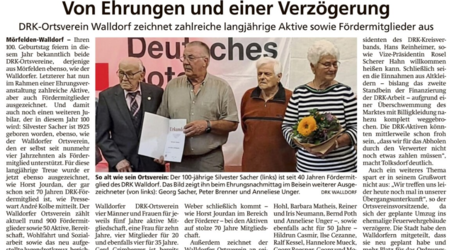 Der DRK-Ortsverein Walldorf in Hessen hat eine lange Tradition. Gegründet bereits 1925 als Sanitätskolonne des Arbeiter-Samariter-Bundes engagieren wir uns seit 1934 unter dem Dach des Deutschen Roten Kreuzes in und um Walldorf. Derzeit zählt unser Ortsverein ca. 900 Mitglieder. Davon gehören 49 zu den aktiven Helfern. Wir engagieren uns vor allem im sozialen Bereich, im Sanitätsdienst/Betreuungsdienst, in der Jugendarbeit sowie in der humanitären Hilfe und im Katastrophenschutz.