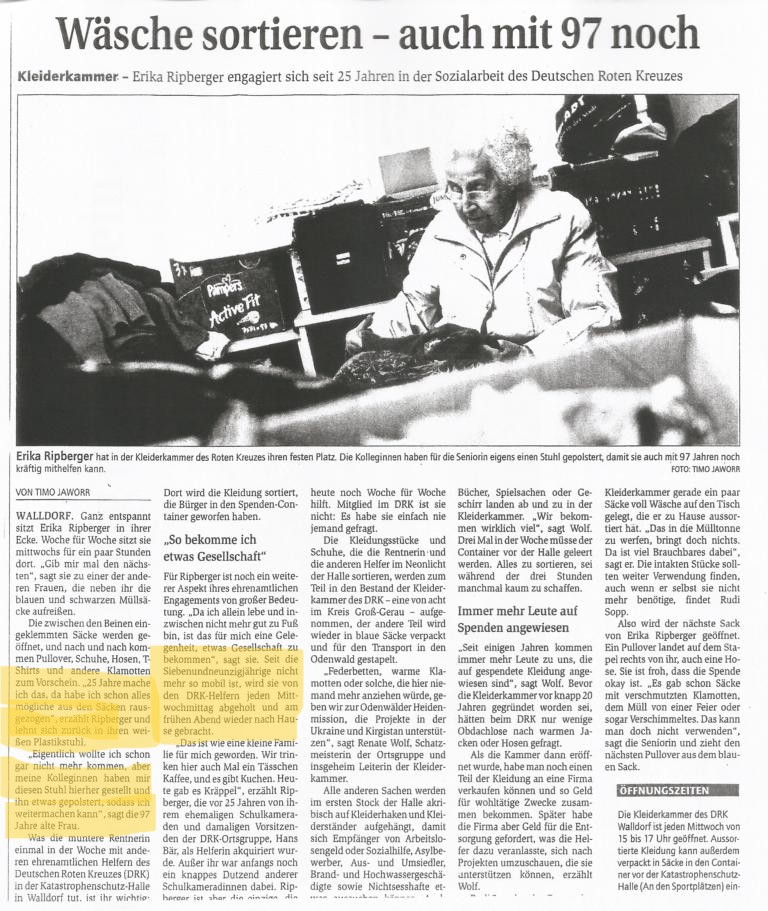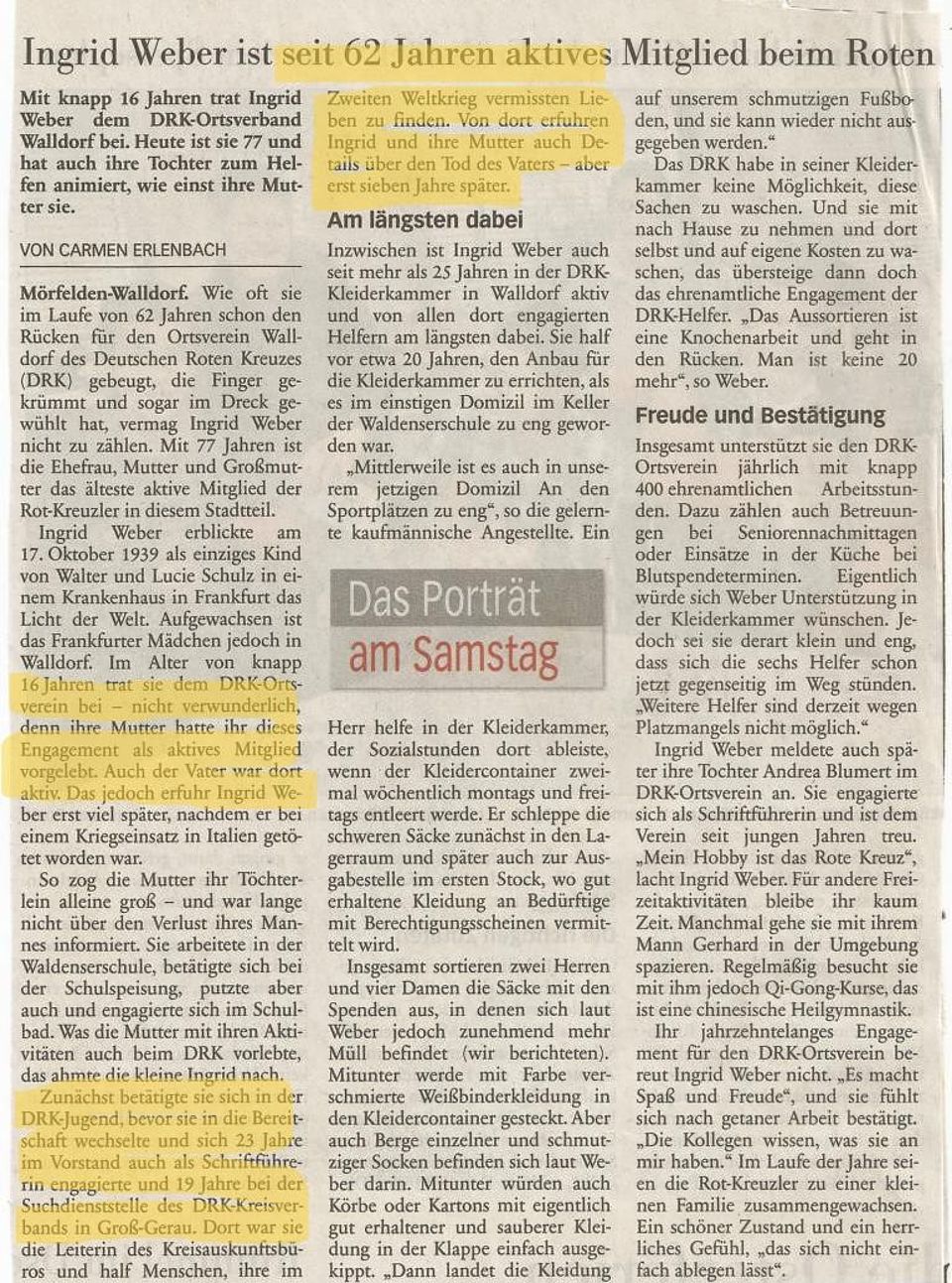 Übrigens: Ingrid Weber wurde im September 2025 für 70 aktive Jahre beim DRK geehrt.