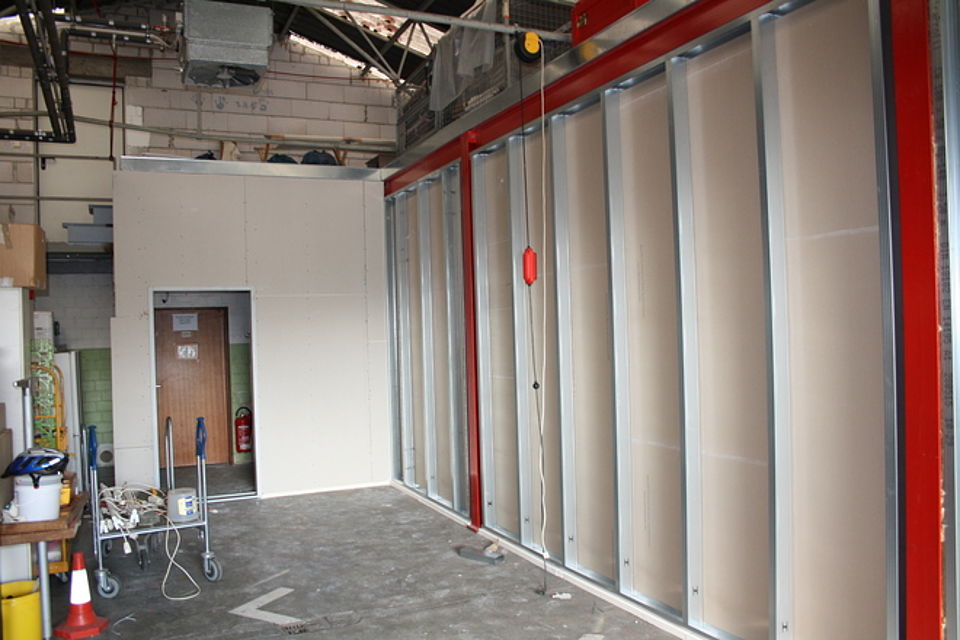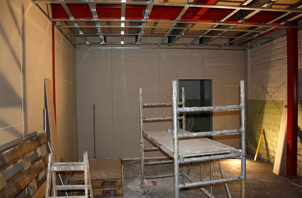 Mehrfach wurde der Beginn der Sanierung der Waldenserschule verschoben. Solange das so war, konnten unser Verein seine Räumlichkeiten im Keller weiter nutzen. Im Jahr 2016 war damit Schluss. Also wurde beschlossen, einen Teil der Fahrzeughalle, die bereits Kleiderkammer und Katastrophenschutzdepot beinhaltete, abzugrenzen und zu geeigneten Räumen umzubauen.