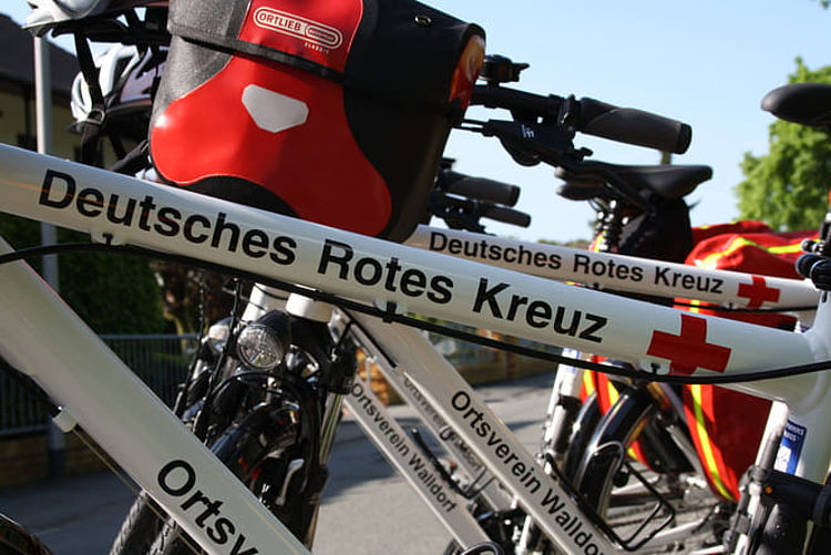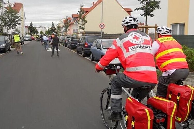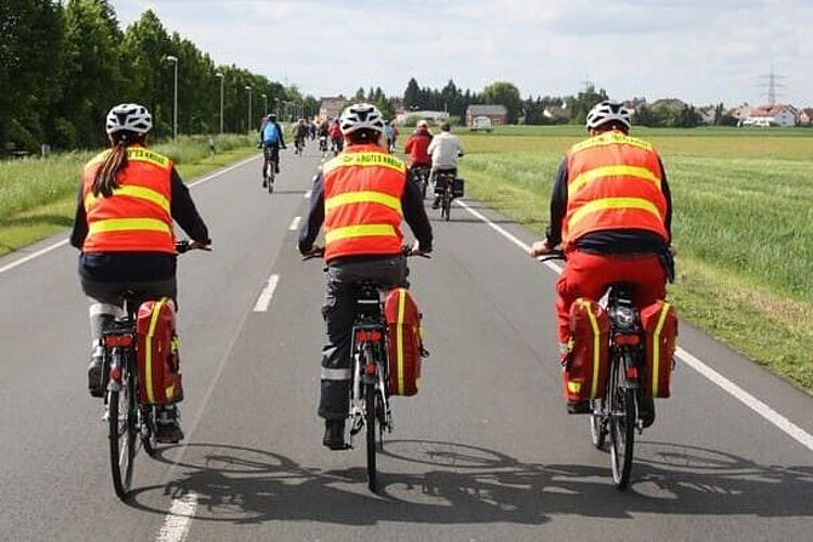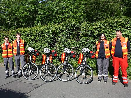 Passend zum ersten autofreien Sonntag „Der Kreis rollt“, ging die kreisweit erste Fahrradstaffel in den Einsatz. Wir haben vier Fahrräder angeschafft und diese zu Einsatzrädern ausgerüstet. In den Einsatz gehen die Fahrräder bei Einsätzen, die schwierig oder gar nicht mit Kraftfahrzeugen zu erreichen sind. So können wir schnell Erste Hilfe leisten. Das beste Beispiel ist die Waldstrecke beim MöWathlon, wo wir alljährlich unsere Fahrradstaffel einsetzen um ganz nah bei den sportlichen Akteuren zu sein.