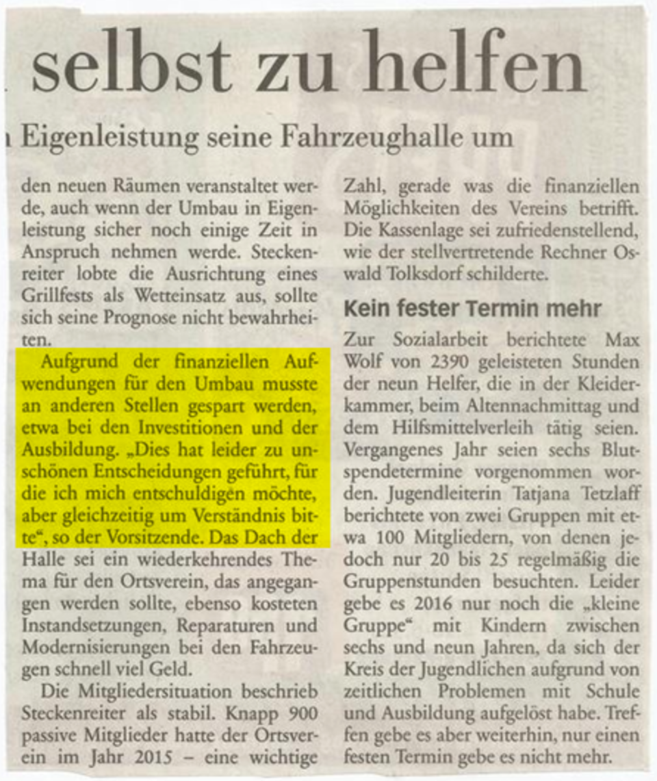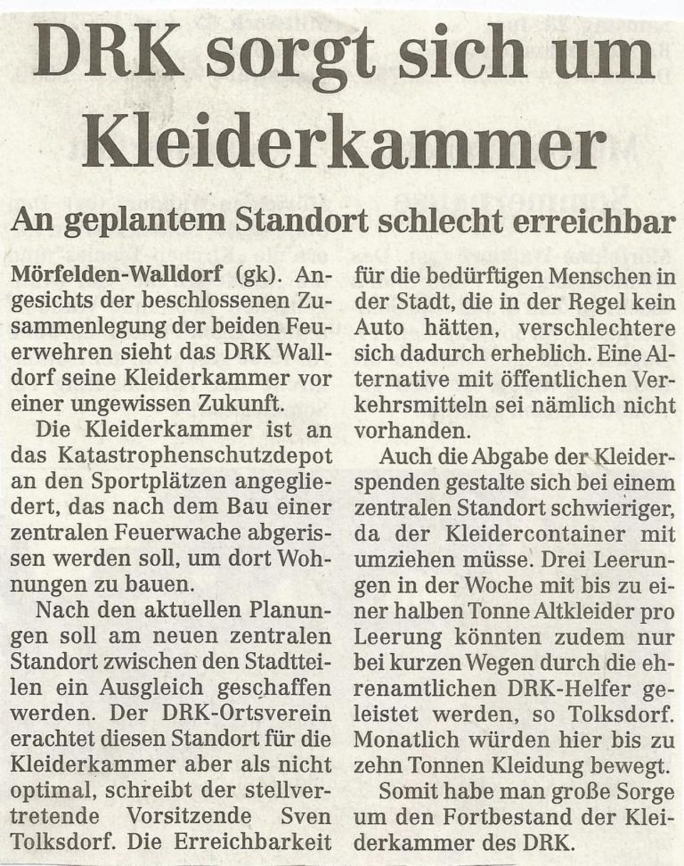 Unsere Kleiderkammer sollte mit der Feuerwehr zwischen die Ortsteile umziehen. Da Bedürftige i.d.R. nicht über Fahrzeuge verfügen, mussten wir den Sinn der Weiterführung der Kleiderkammer infrage stellen. Zum Glück kam es letztendlich anders.
