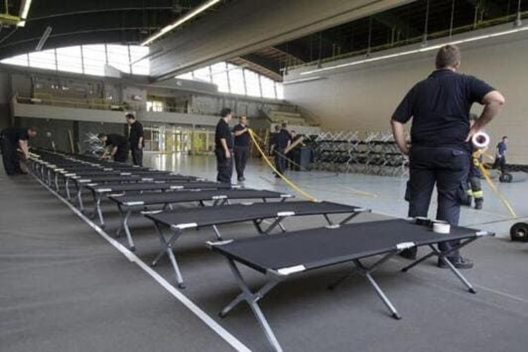 Die nebenstehenden Bilder zeigen die Notunterkunft Starkenburg-Kaserne Darmstadt.