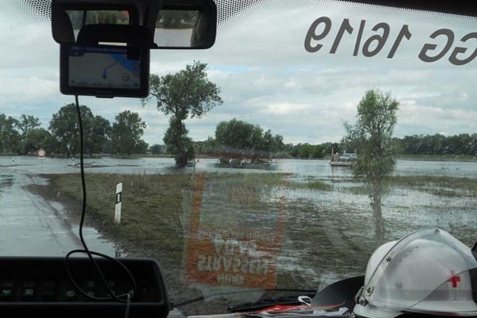 Selbstverständlich findet unsere Katastrophenschutz-Hilfe auch bundesländerübergreifend statt. Sven Tolksdorf und weitere Mitglieder des Roten Kreuzes aus dem Kreis Groß-Gerau verbringen ihre Urlaubstage in Sachsen-Anhalt und versorgen dort die Betroffenen und die Einsatzkräfte.
