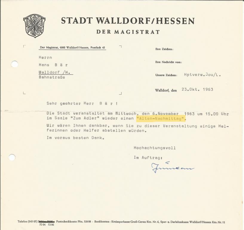 Heute nennt man die Alten lieber Senioren. Ansonsten hat sich dieses Event zu einer beliebten Tradition entwickelt. Mindestens seit 1963 stehen wir helfend zur Verfügung.