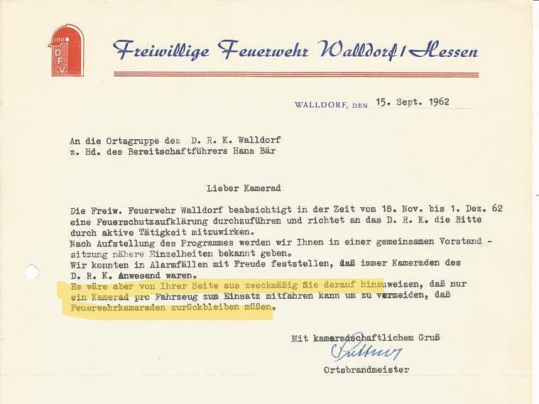 Die Baracke in der Waldstraße wird dem Orstverein zur Nutzung überlassen. Sie dient anfangs als Schulungsraum und Materiallager.