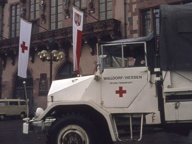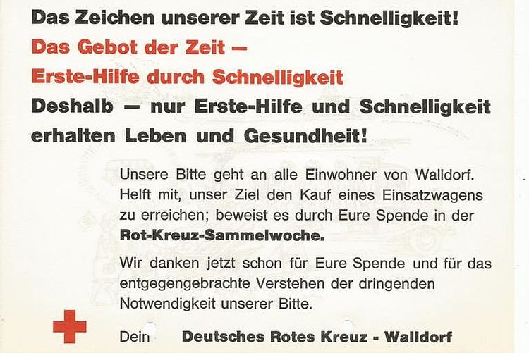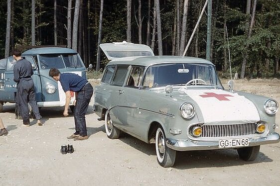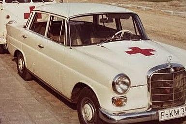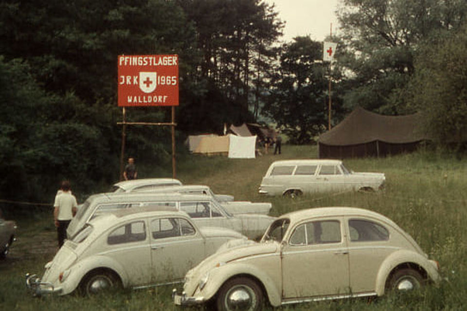 Bevor es ein vereinseigenes Fahrzeug gab, wurden private Fahrzeuge mit einer Flagge zum Rot-Kreuz-Fahrzeug gemacht (Bilder unten).