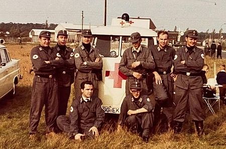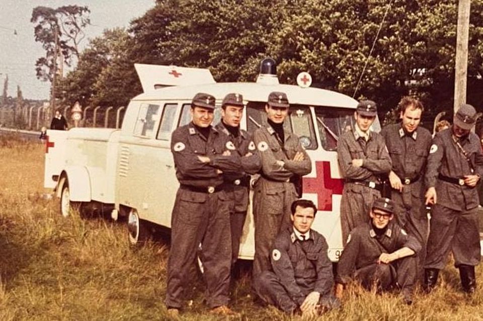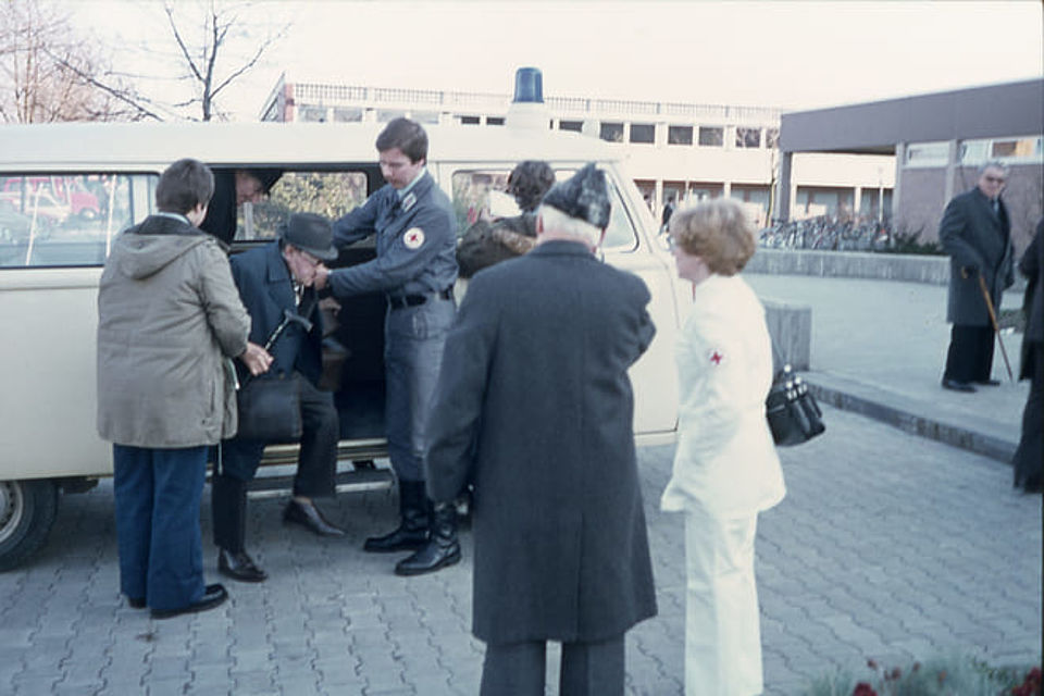 Gab es Sportunfälle bei Sanitätsdiensten mussten sogar vorbeifahrende Fahrzeuge gebeten werden, um den Verletzten ins Krankenhaus zu fahren, da damals noch nicht jede*r unserer Sanitäter*innen über ein eigenes Auto verfügte.