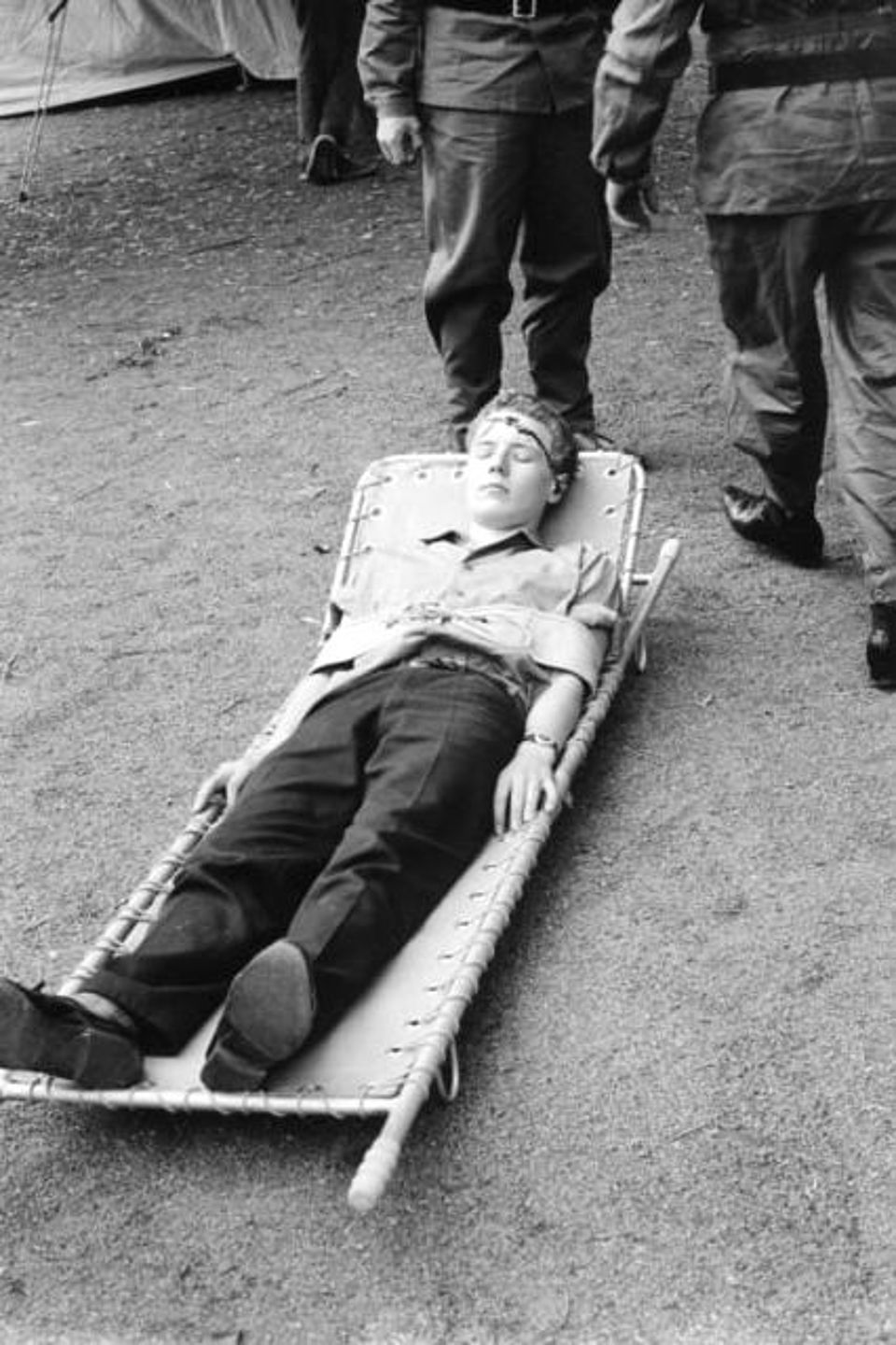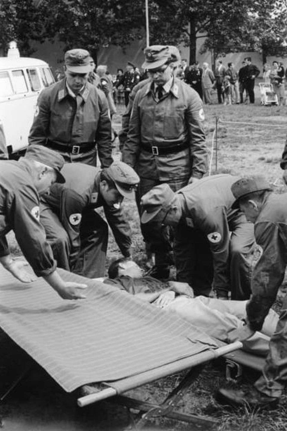 Unser damaliger Bereitschaftsleiter und späterer langjähriger Vorsitzender Hans Bär übernahm die medizinische Versorgung vor Ort.