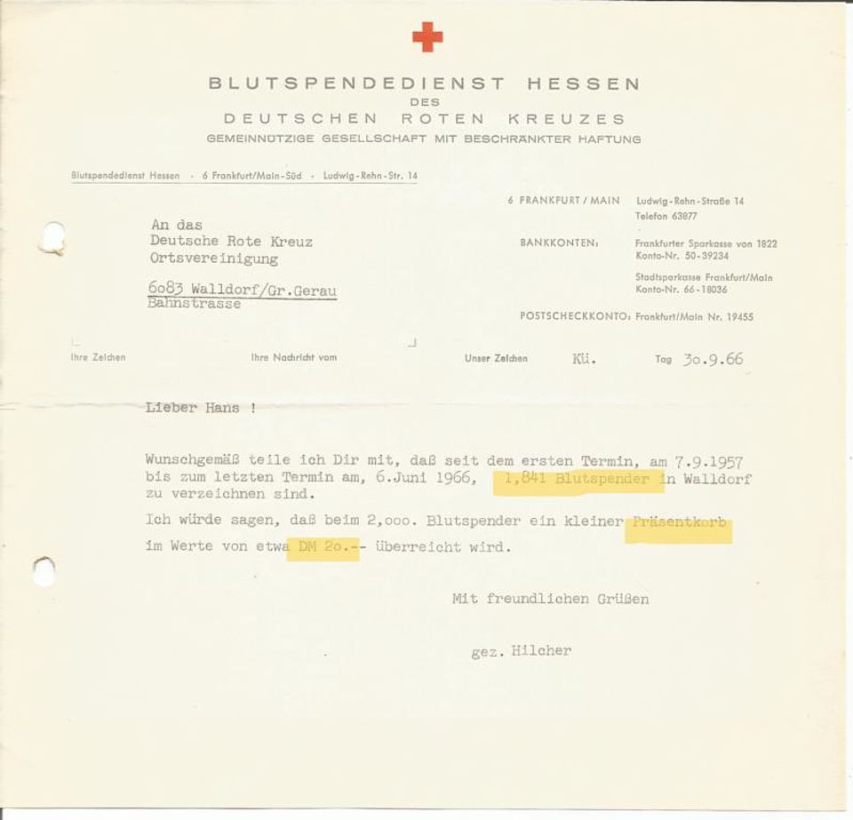 Gleichzeitig wird uns als Anreiz ein Fresskorb für 20 DM versprochen, wenn die 2.000. Blutspende geknackt wird.