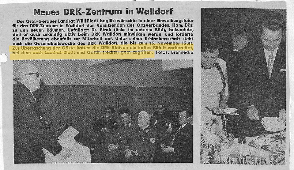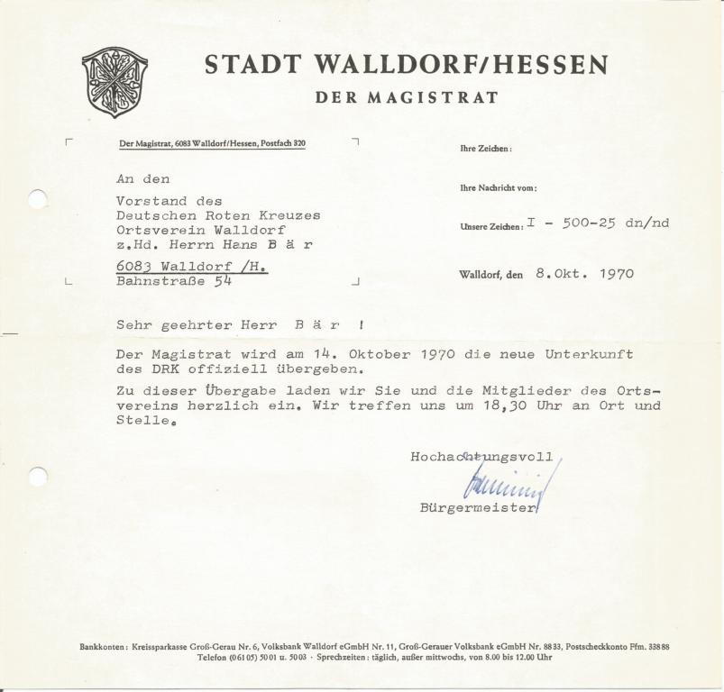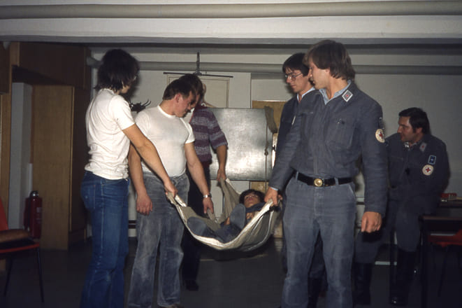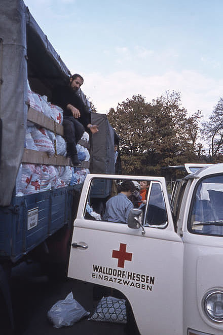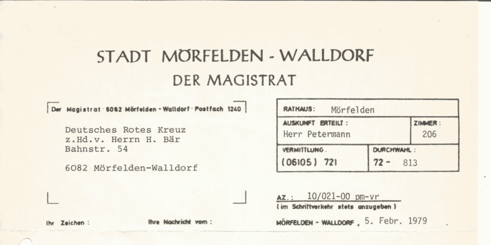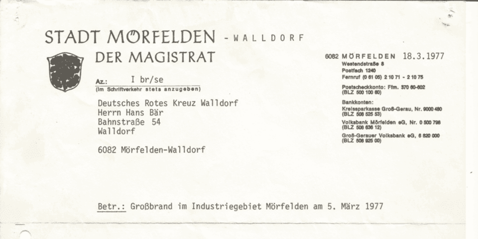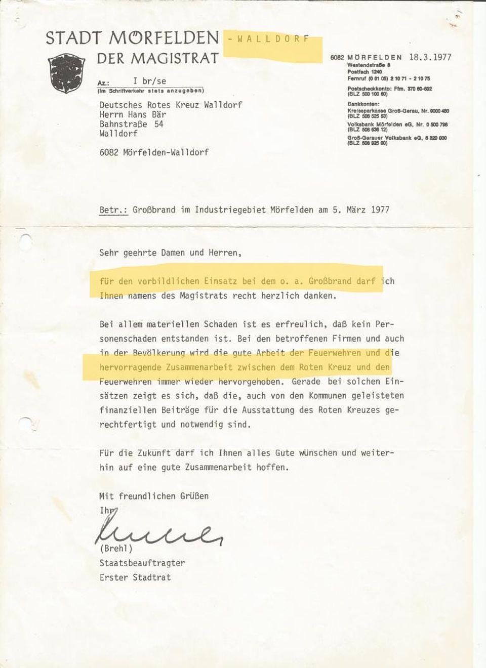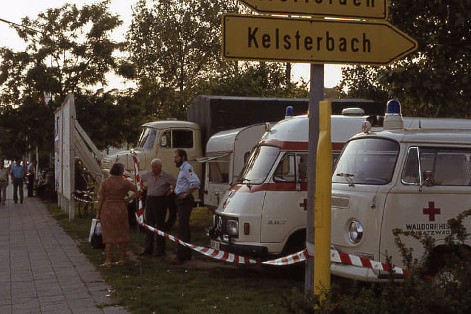 Jubiläen sind Gelegenheiten um zurück, aber auch nach vorn zu blicken. Zehn Jahre zuvor war man froh über den einzigen Einsatzwagen, der zur Verfügung stand. Mitte der 1970er ist der Fuhrpark gewaltig angewachsen. Ergänzend zu eigenen Fahrzeugen wurden nun auch Fahrzeuge des DRK-Kreisverbandes und des Katastrophenschutzes in Walldorf stationiert. Die Fahrzeuge wurden von uns in den Einsatz gebracht und auch gewartet. Bis heute sind unterschiedliche Fahrzeuge des Katastrophenschutzes in Walldorf stationiert.