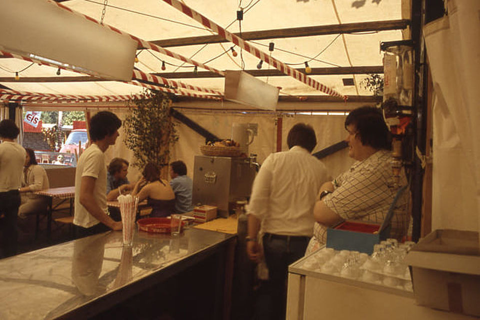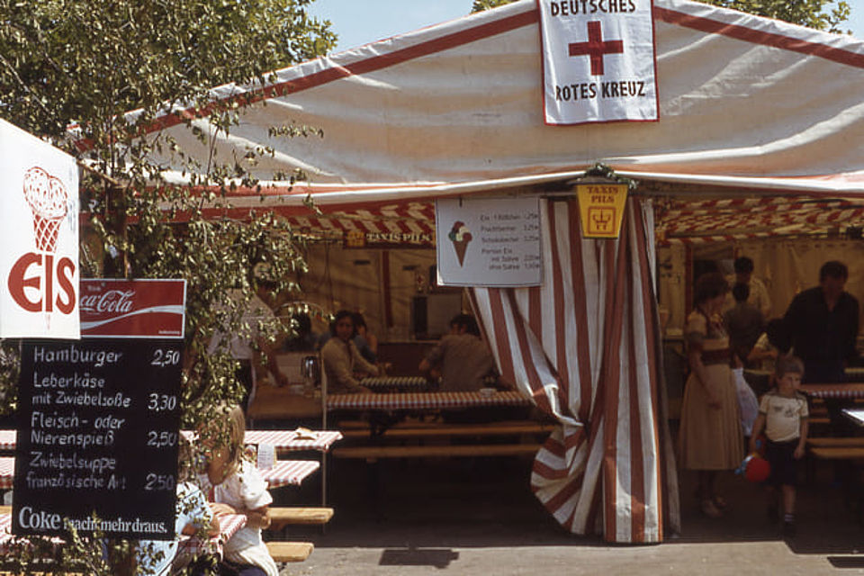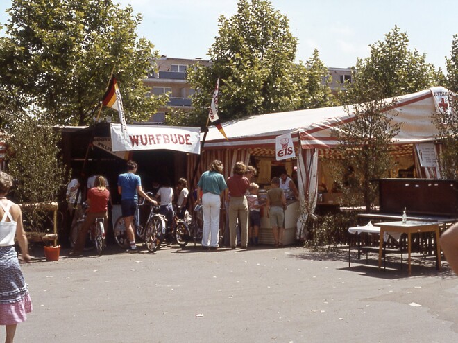 Wir sind dabei. Mit eigenem Festzelt feiern wir an vier Tagen gesellig zusammen. Das JRK hat eine Wurfbude gebaut. Diese Hütte ist bis heute auf den Weihnachtsmärkten mit dabei.