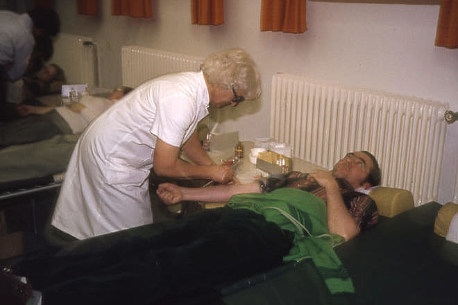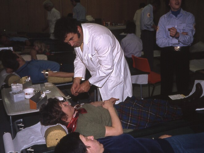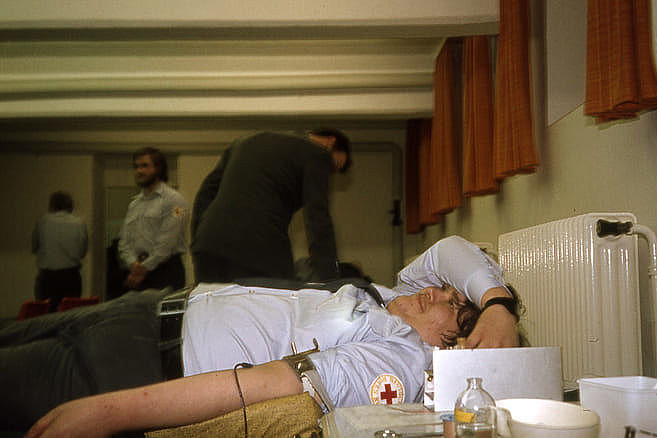 Die Bilder zeigen eine Blutspende in unserer neuen Unterkunft.