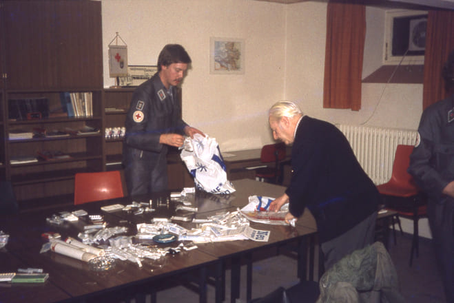 Der VW Kübelwagen (links im Bild oben) stand unserem Mitglied Wilfried Klein zur Verfügung, denn er fungierte zusätzlich als Katastrophenschutzbeauftragter beim DRK-Kreisverband Groß-Gerau.