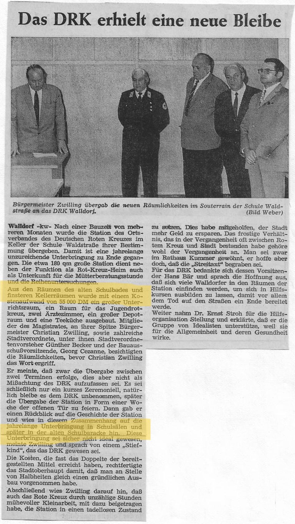 Die Blutspenden konnten wir im ev. Gemeindezentrum und in der Stadthalle abhalten. Neben dem Spendenauruf im obigen Zeitungsartikel, wurde auch um Spenden für die Anschaffung von Stühlen gebeten, damit es mit den Erste-Hilfe-Kursen erstmal provisorisch weitergehen konnte.